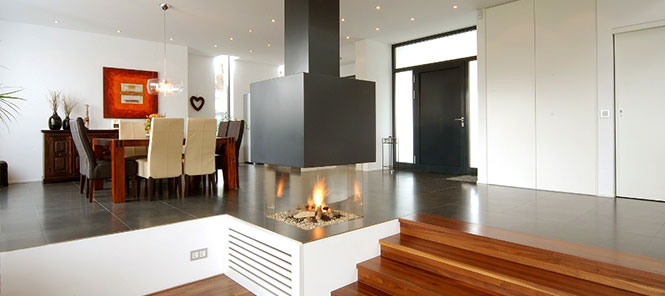 Weg vom Herkömmlichen, vom Bekannten und hin zu einem neuen Wohngefühl. Mehr Emotion in den eigenen vier Wänden, mehr Spannung und Anregung. Das Zuhause als den Ort der eigenen Entfaltung sehen. Das sind die Impulse, die Breidenbach mit seinen Kamin – Unikaten gibt. Bestes Beispiel ist dieses offene Feuer als zentraler Mittelpunkt im Wohnzimmer.