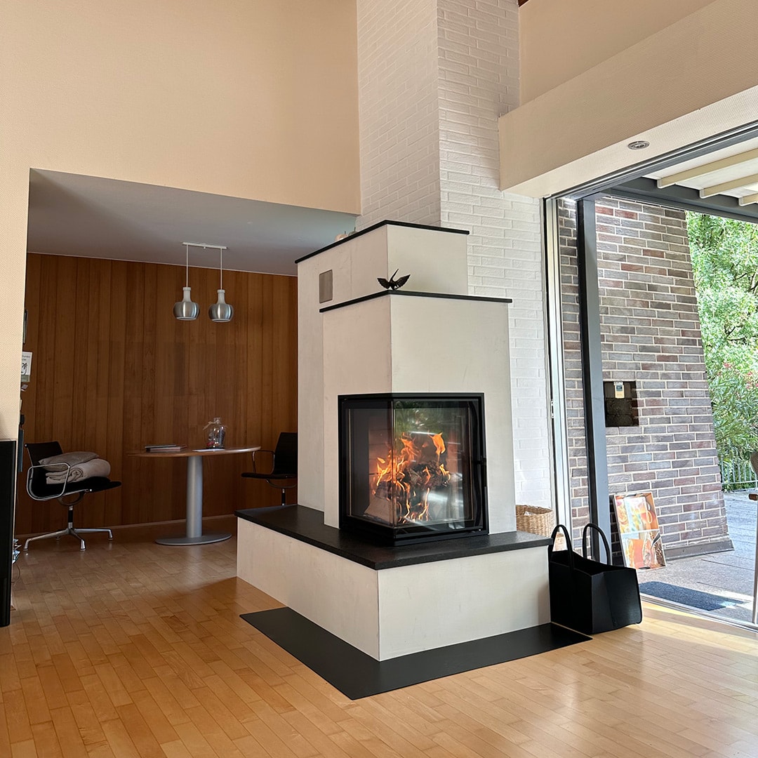 Für Niedrigenergie – und KfW Energieeffizienzhäuser bietet sich ein Speicherkamin mit Grundofen an, um einen Wohnraum an einen optimalen Wärmebedarf anzupassen. Dieser Kombination, so Kunibert Breidenbach, genügt ein Befeuern mit gerade einmal 2 × 2,5-3 kg Holzauflagenmenge, um eine angenehme und gesunde Wärmeabgabe von bis zu 12 Stunden über die Ofenhülle zu erreichen.