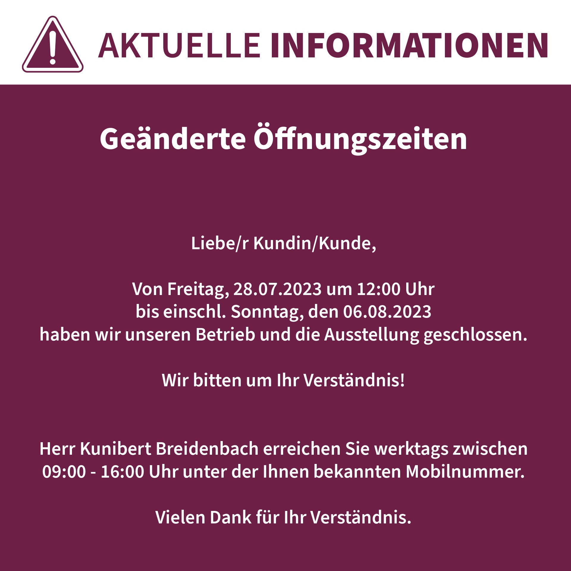 Wir bitten um Ihr Verständnis!