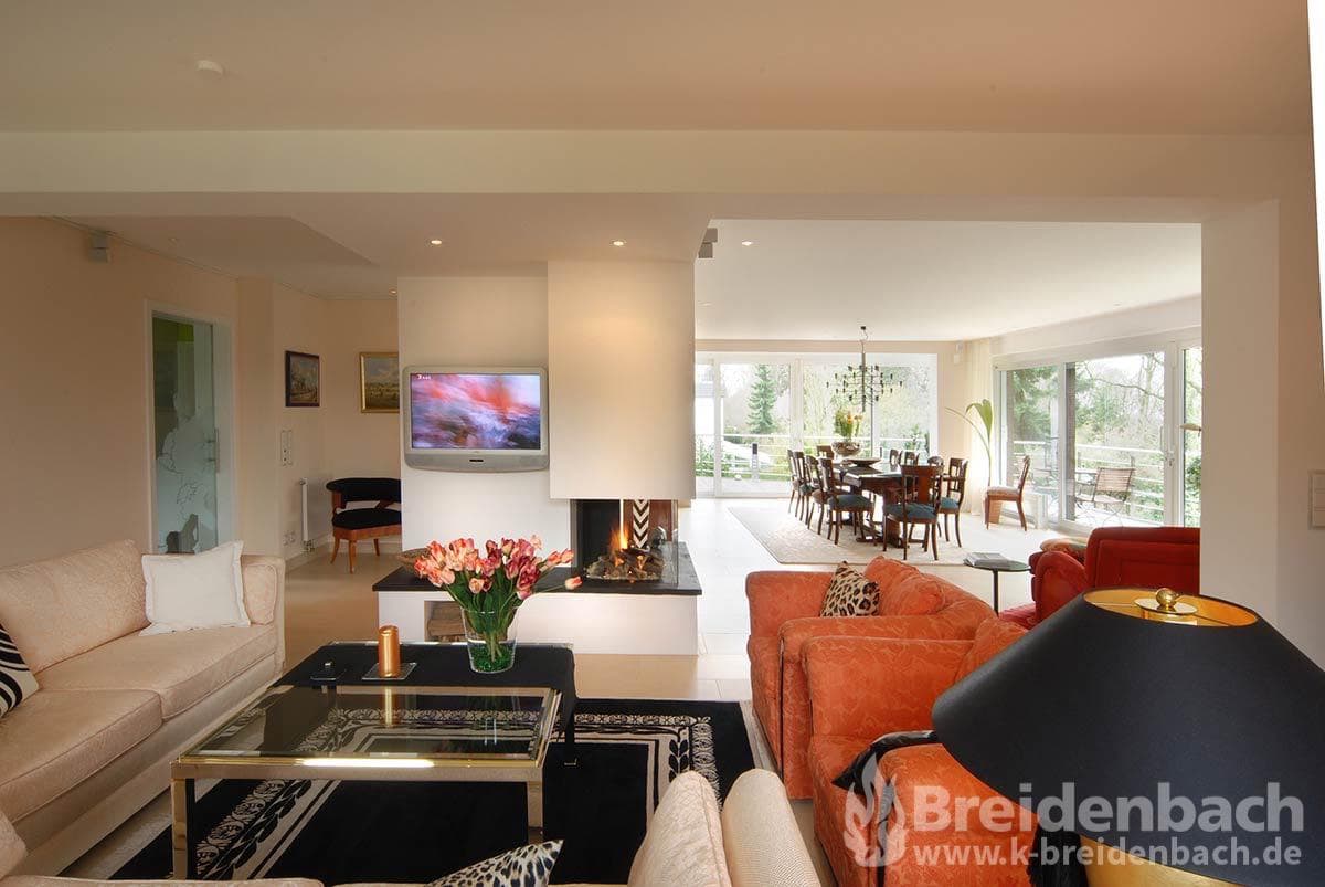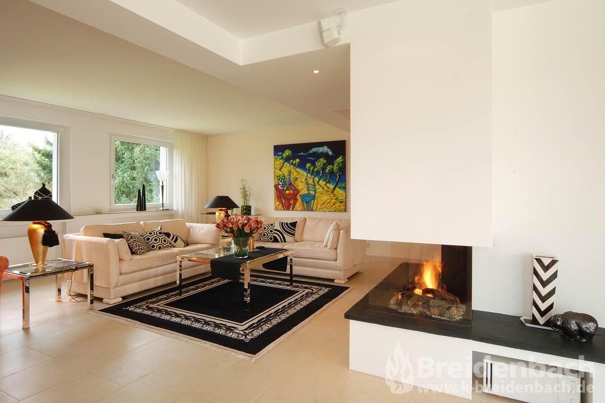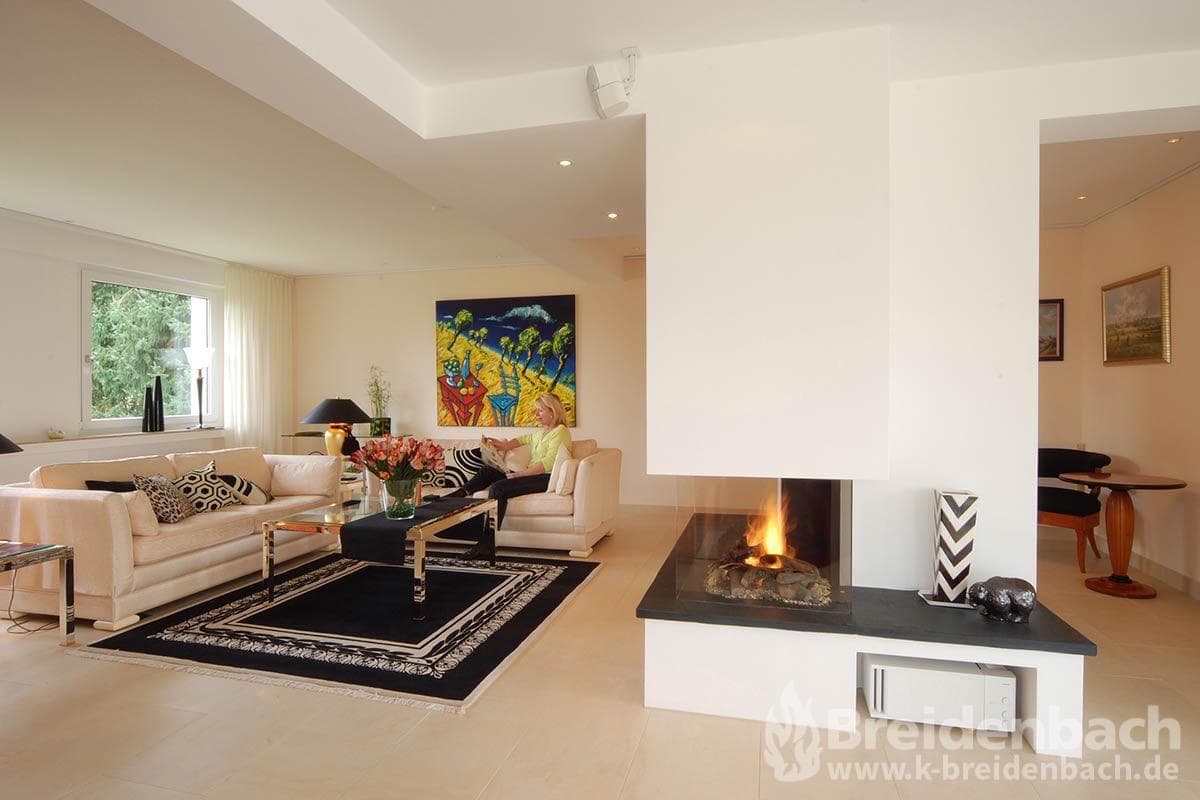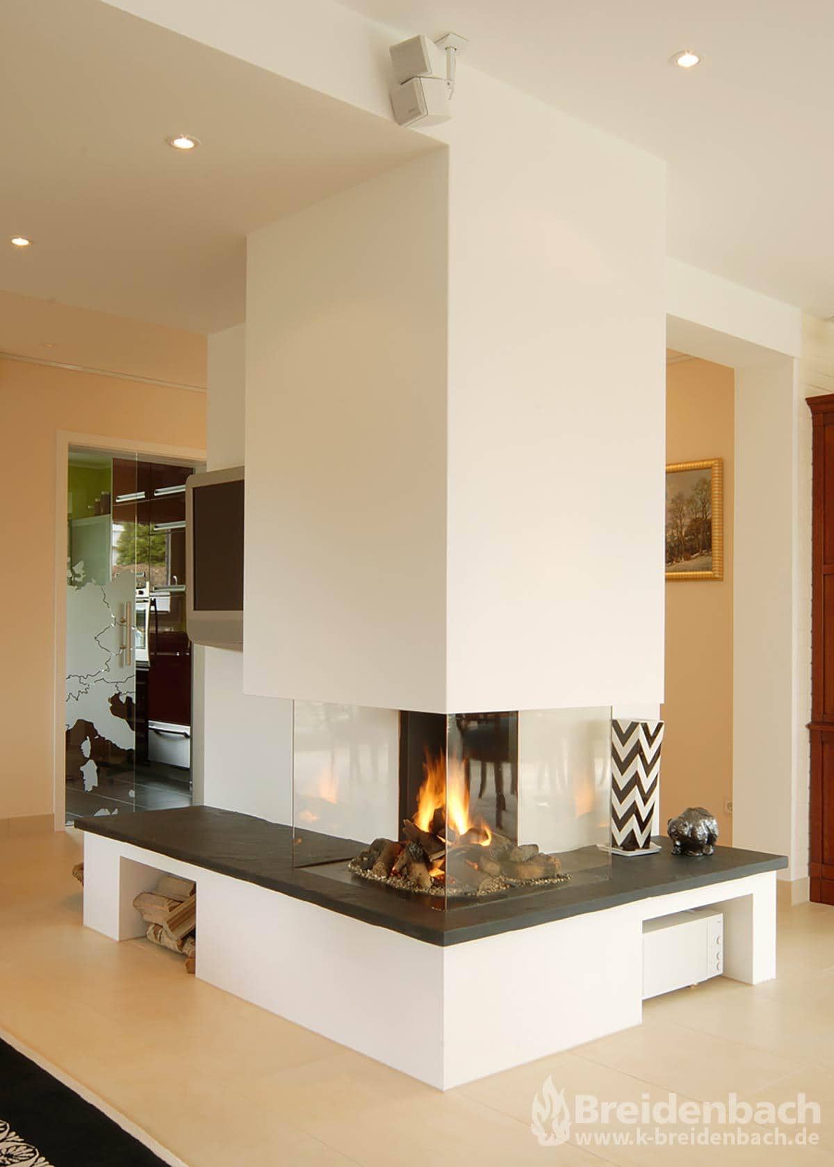 Hohe Ansprüche haben und sie auch ausleben sind zweierlei. Denn wer extrem viel fordert, muss in der Regel auch lange danach suchen. Gut, wenn man fündig wird. Besser, wenn das begehrte Stück auch noch ein Unikat ist. Am allerbesten, wenn dabei auch langgehegte Wünsche berücksichtigt werden. Wie bei Breidenbach mit diesem einzigartigen offenen Gaskamin. Dieser Kamin bietet eine bis ins kleinste Detail durchdachte Wohnlösung mit überraschenden Extras. Denn was auf den ersten Blick aussieht wie ein Kamin, entpuppt sich beim zweiten Hinsehen als Gesamtkunstwerk zum Sehen, Spüren und Wohlfühlen.