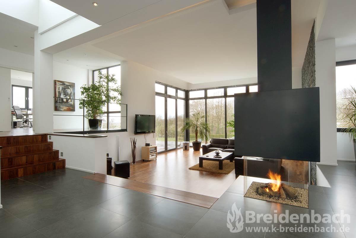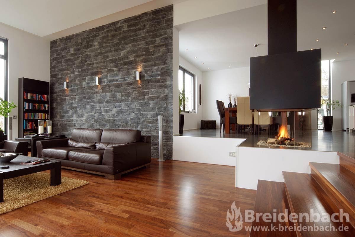 Ist das Wunschmodell individuell als Unikat entworfen, wird es im Souterrain in der Werkstatt vorgefertigt. Kaminbänke, Simse und Abdeckungen entstehen als Bauteile, so dass der Ofenbau beim Kunden nur 3 – 6 Tage dauert. Diese Arbeiten erfolgen bei nachträglichem Einbau in einem Folienzelt, so dass die Räumlichkeiten staubfrei bleiben. Schlüsselfertig und komplett in eigener Regie wickelt Breidenbach alle Aufträge ab. Für die Realisation außergewöhnlicher Kaminanlagen stehen alle Materialien zur Verfügung. Es gibt Kamine aus rostigem Metall, aus Marmor oder Ziegeln, manche sind verputzt, andere gekachelt. Glas und Edelstahl, Holz und Keramik, Naturstein und Metall – Breidenbach legt seiner Phantasie keine Fesseln an. Der Kunde bekommt bei uns, was er sich wirklich vorgestellt hat.